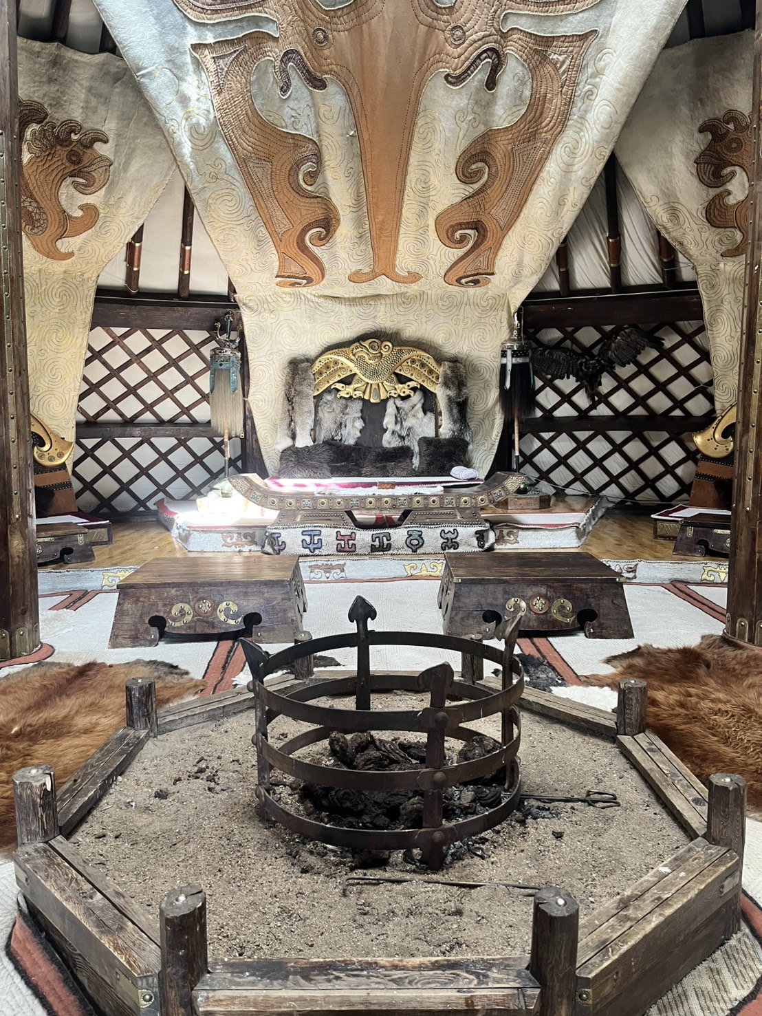かつてのモンゴル帝国の栄華を再現したテーマ村で、当時の民族衣装デールを身にまとい記念撮影も楽しみました。その後はシャーマンの展示エリアへ移動。いくつものゲルを巡り、それぞれ異なるシャーマニズムの特色に触れることができました。