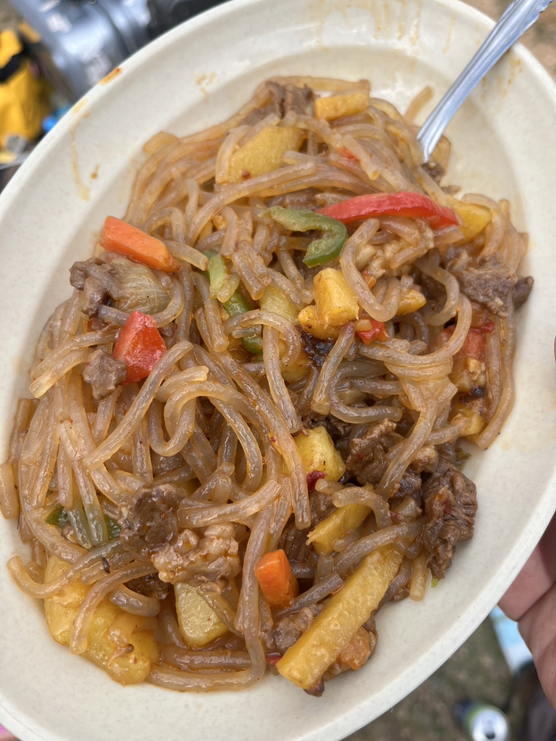 観光を終えると昼食です。メニューは羊肉入りのチャプチェ風の麺。少し濃い味付けながら食欲をそそり、あっという間に完食しました。