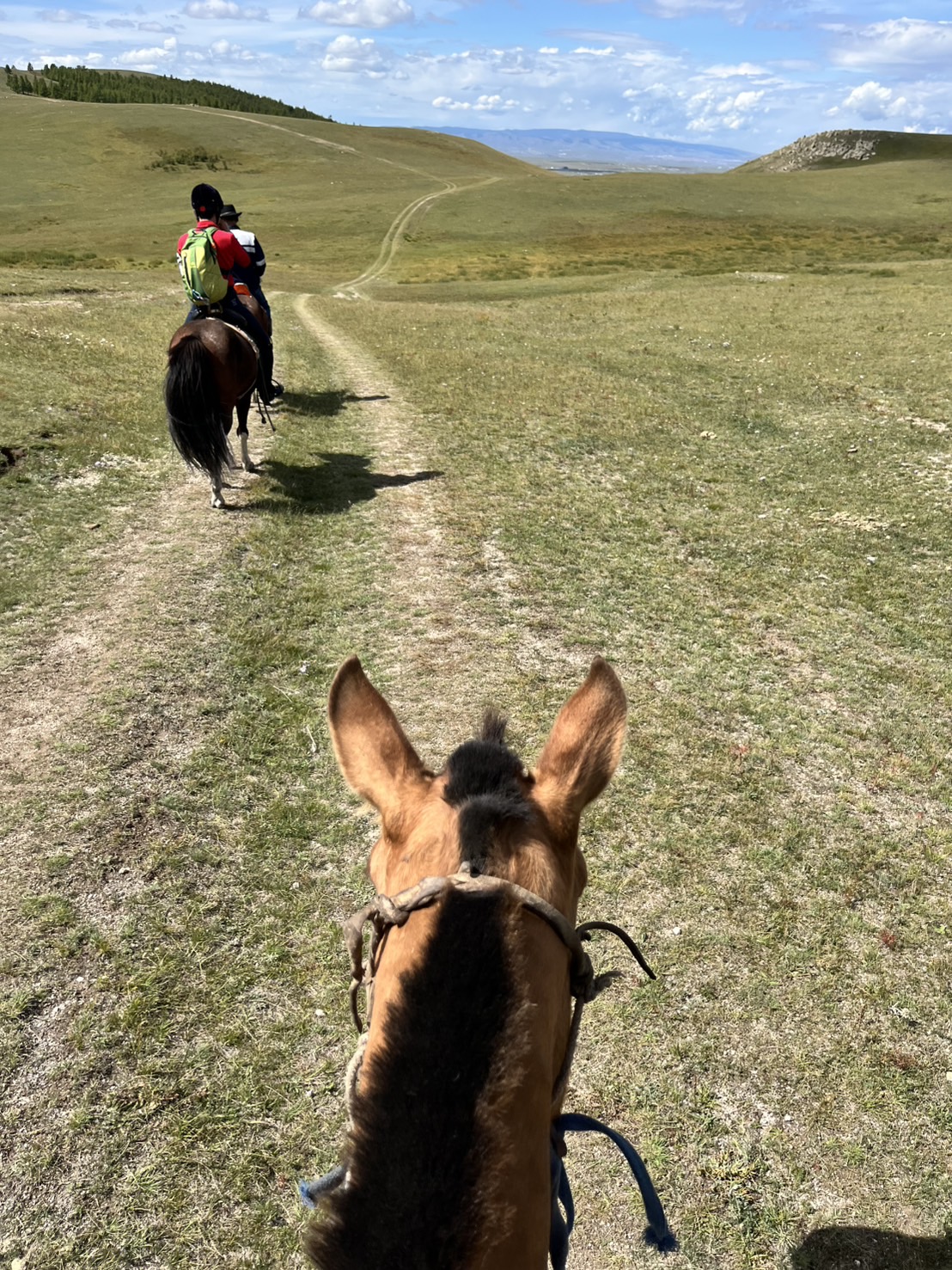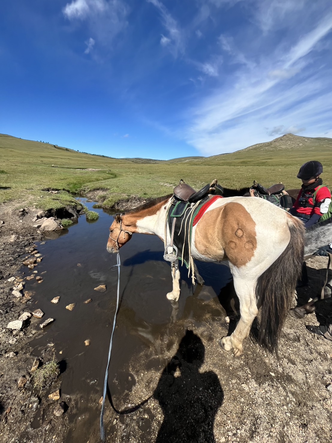 雄大な草原を進むうちに、ようやく馬の扱いにも慣れてきたように感じました。林や岩場では慎重に進み、馬と息を合わせながら道を切り拓いていきます。