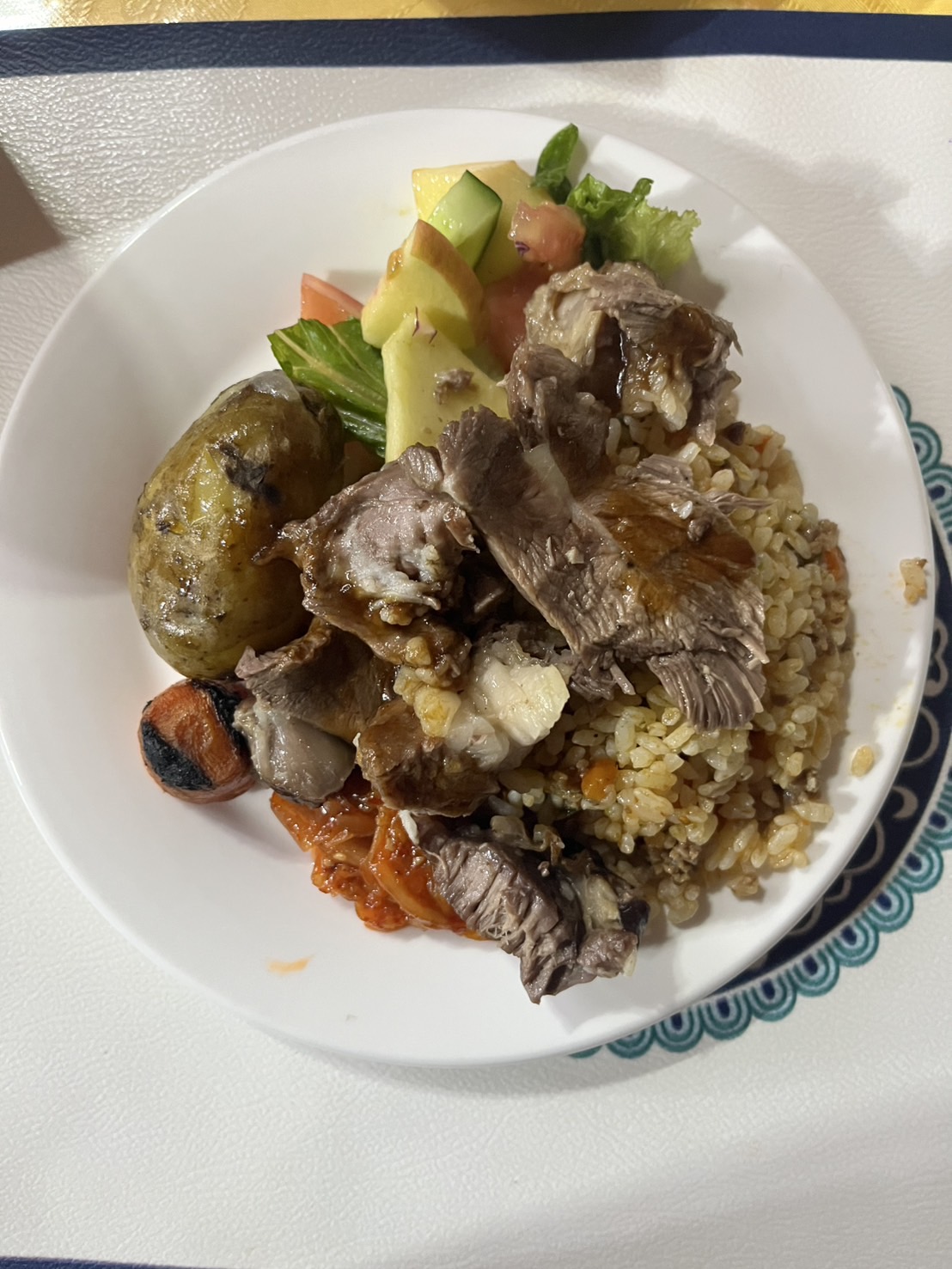 ひと息ついた後は食堂へ向かい、夕食をいただきました。メニューは羊肉と野菜を煮込んだプレート料理。柔らかい羊肉はクセが少なく、素材の旨味がしっかり感じられ、本場モンゴルならではの味わいに感動しました。