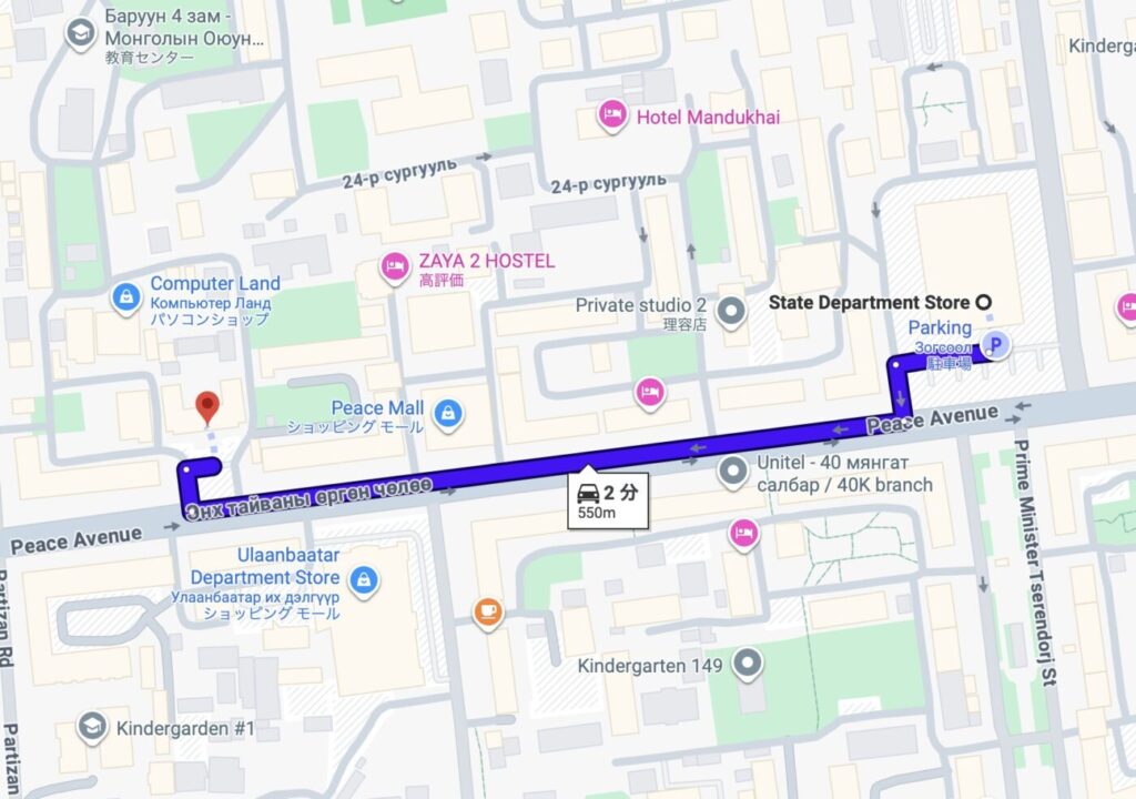 ピースモールを過ぎて、ゴロムト銀行ビジネスセンター東側