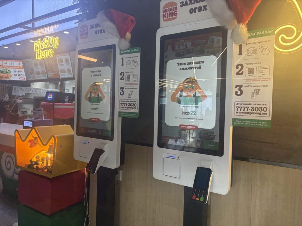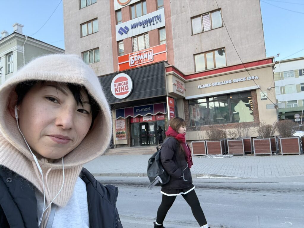 バーガーキングの看板を見つけて店内に一歩足を踏み入れると、中はあったかい。モンゴルのお店や集合住宅はセントラルヒーティングが多いので、安心して過ごせます。