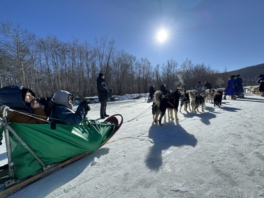 テレルジ国立公園などで楽しめる犬ぞりは、冬限定の目玉アクティビティ。スピードが出るので風に当たって寒いですが、迫力のある疾走感はやみつきになる楽しさ!