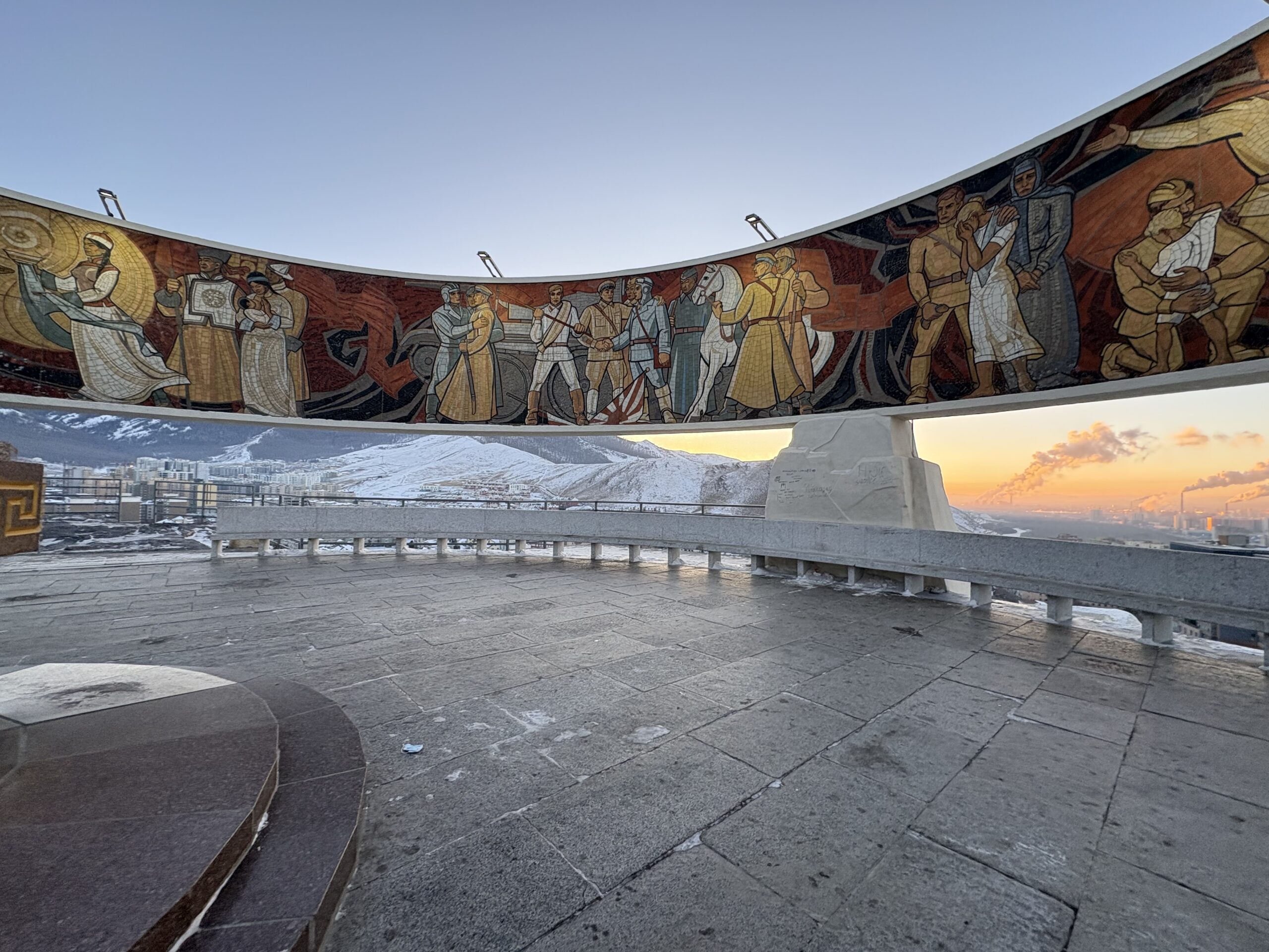 ウランバートルの南側にある「ザイサントルゴイ(ザイサンの丘)」は、第二次世界大戦の戦没者を記念した慰霊碑がある展望台。市内から車で約15〜20分の場所にあります。