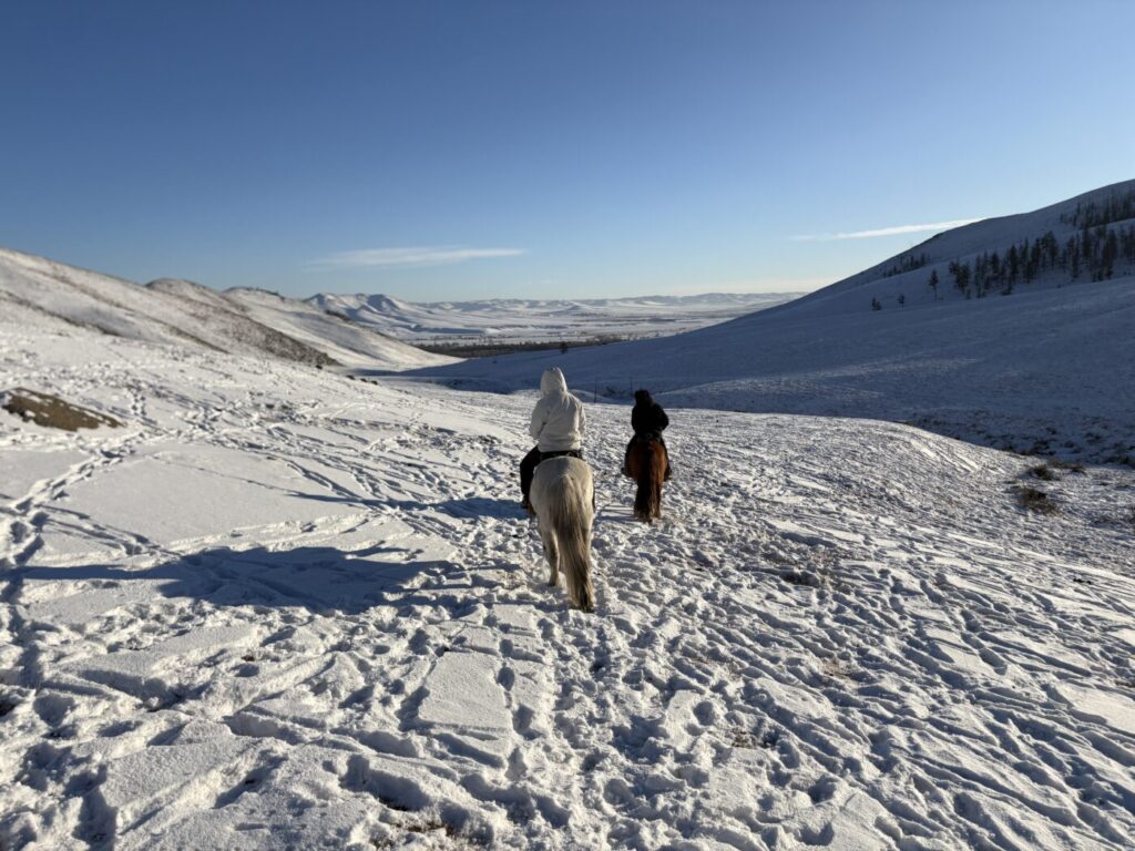 -20~30℃に達する冬の極寒モンゴルの楽しみといえば、真っ白な雪原での乗馬や、凍った川の上を走る犬ぞり。でも、外でアクティブに動いた後は、やっぱり体が冷えてしまうもの。