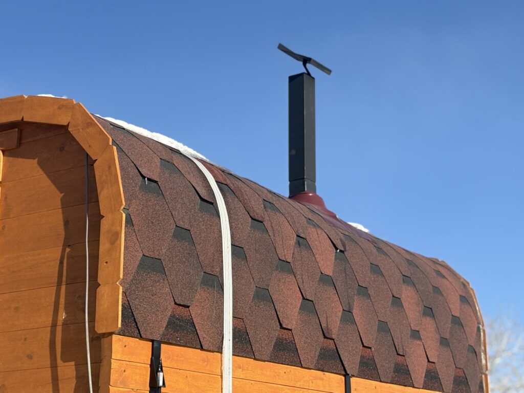 サウナ本体はスクエアタイプのバレルサウナ。普通のバレルサウナよりもスペースにゆとりがあり、3-4人ほど収容OK。見た目に温かみのある木製で、心地よくリラックスできる空間にしています、