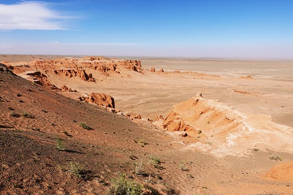 そして、朝からは日本語ガイドのマンジーさん・ドライバーのトゥラガさん(ツォクト代表のお兄さん)・私たち女の子3人の「5人旅」が始まりました!!!最初に向かったのは「バヤンザグ」です。恐竜の化石が発掘されたことで有名であり、赤茶色の崖が遠くまで広がる景色は、絶景でした。遊歩道が整備された歩きやすい道で、1時間半くらいかけて、ゆっくりと観光しました。また、マンジーさんに写真スポットを教えて頂いたので、素敵な写真が撮れました!